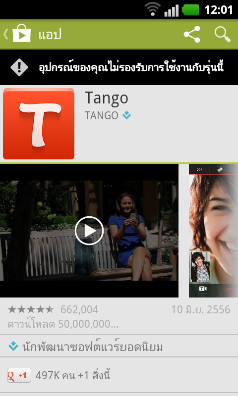 "อุปกรณ์ของคุณไม่รองรับ..."