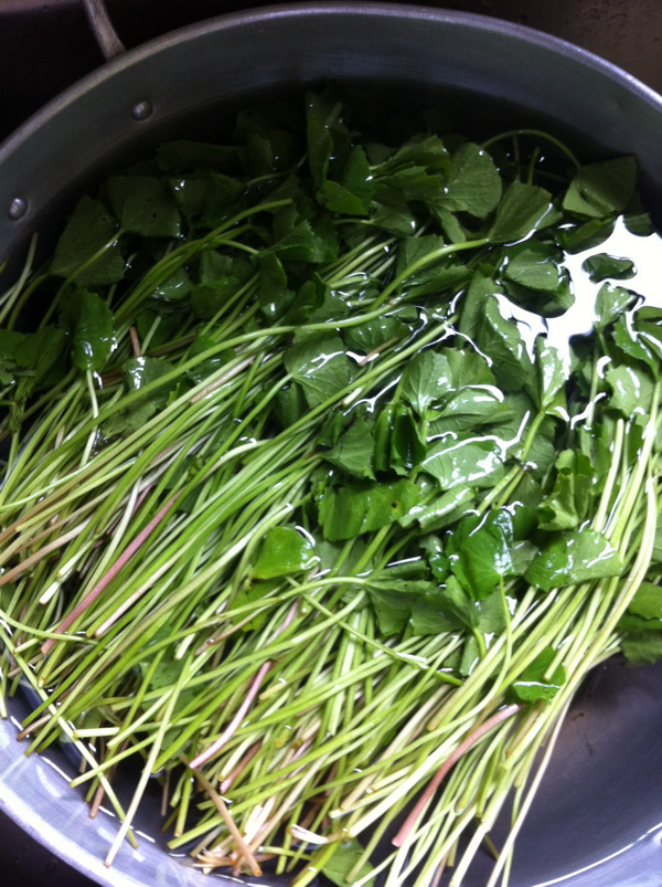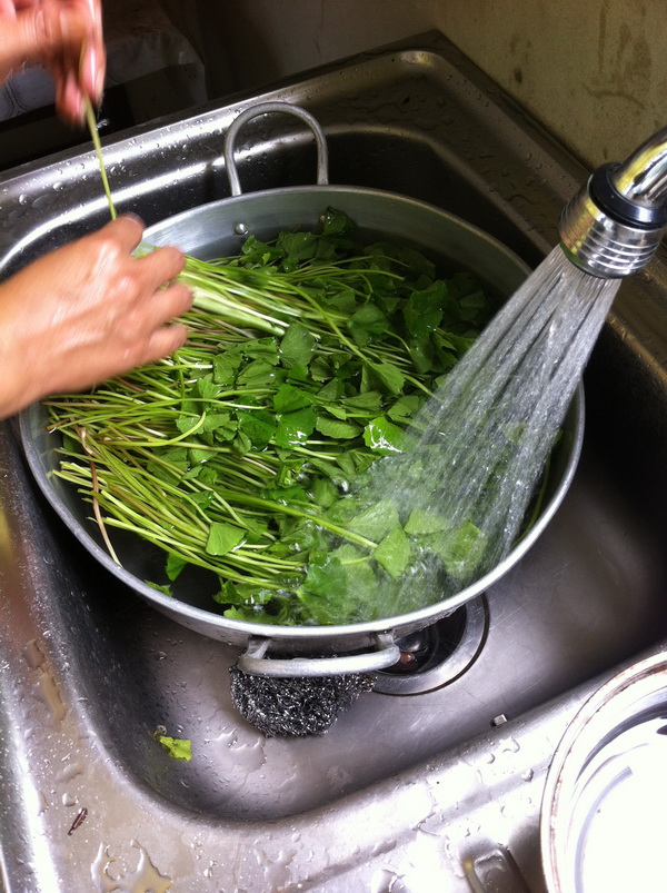 1. ใบบัวบกล้างให้สะอาดก่อนเด็ดนะคะ เราล้างประมาณ 5-6รอบเด็ดใบ ชอบก้านก็เด็ดก้านใส่ไปด้วย ตามใจชอบเลยค่ะ