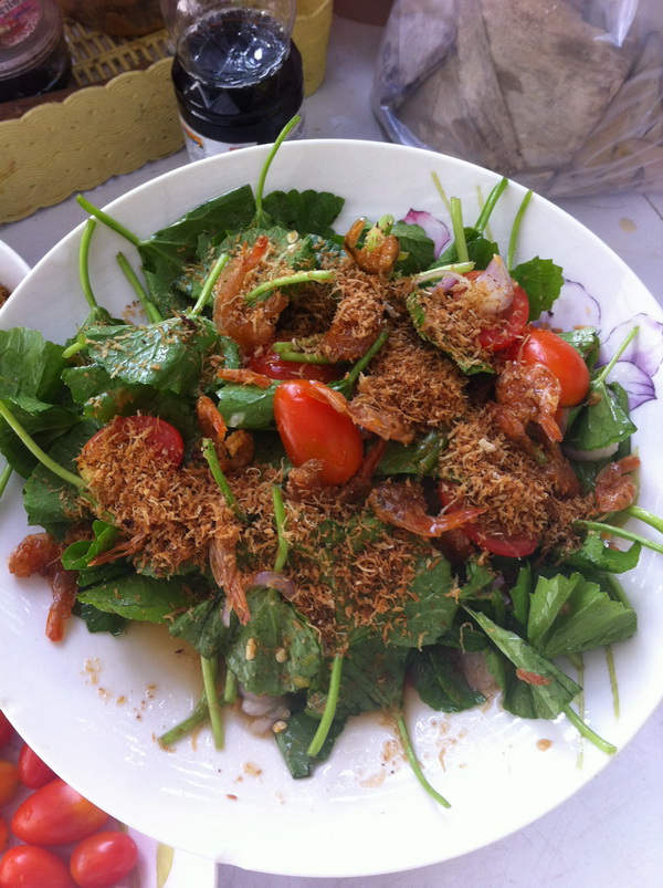 เมนูนี้มีชื่อว่ายำใบบัวบก อย่าพึ่งร้องยี้ หยึยๆๆ จริงๆ แล้วไม่ได้ขมอย่างที่คิด เพราะว่ารสชาติของมะนาวเปรี้ยวๆ