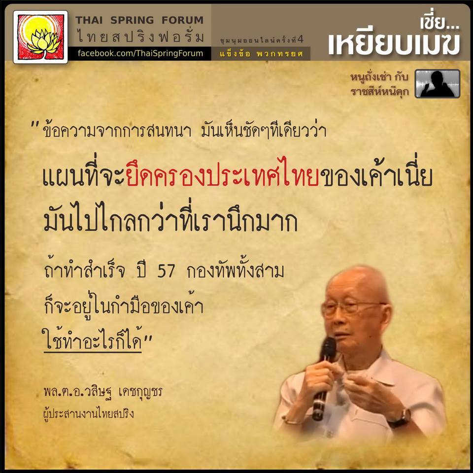 1. จาก facebook คุณวาสนา นาน่วม (สรุปโดยย่อ) ก็คือทหารมองว่า "ยังไม่จำเป็นต้องใช้พรก.ฉุกเฉิน เพราะแค่พรบ.ความมั่นคงฯ ก็ดูแลสถานการณ์ได้ โดยกำลังตำรวจยังพอเพียง เพียงแต่ให้มีการปรับแผน การจัดวางกำ