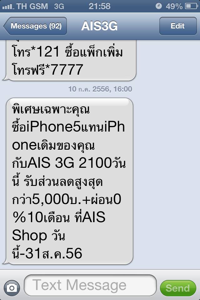 ขอเตือนเพื่อนๆที่ใช้ iPhone ค่าย AIS ทุกท่าน ว่าอย่าเพิ่งไปดีใจถ้าได้รับ SMS ส่วนลดจาก AIS