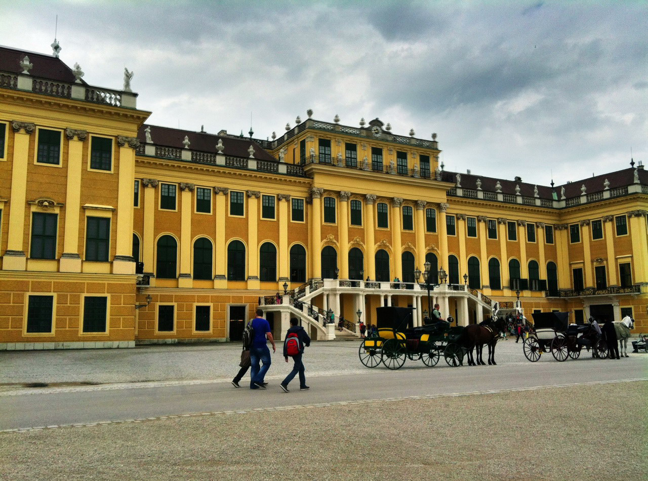 ออกเดินทางประมาณ 8-9 โมงเช้า ไปลงที่สถานี Schonbrunn เลยค่ะ เดินออกแล้วตามทางฝูงชนไป มีป้ายบอก เดินไกลเหมือนกันกว่าจะถึง เข้าไปซื้อตํ๋วชมพระราชวังด้านหน้า