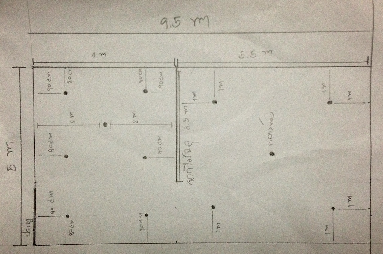 ห้องที่2 5 เมตร *5.5 เมตร ใช้ไฟน้อยกว่าเพราะอาจจะไม่ได้มีกิจกรรมบริเวณนี้มากนักแต่จะใช้ไฟหวัตเยอะหน่อยค่ะ