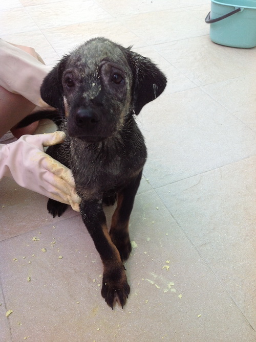 เราอาบน้ำให้เค้าวัน เว้น วัน ทายา กินยา จะพยายามรักษาน้องให้หายดี และเร็วที่สุด
