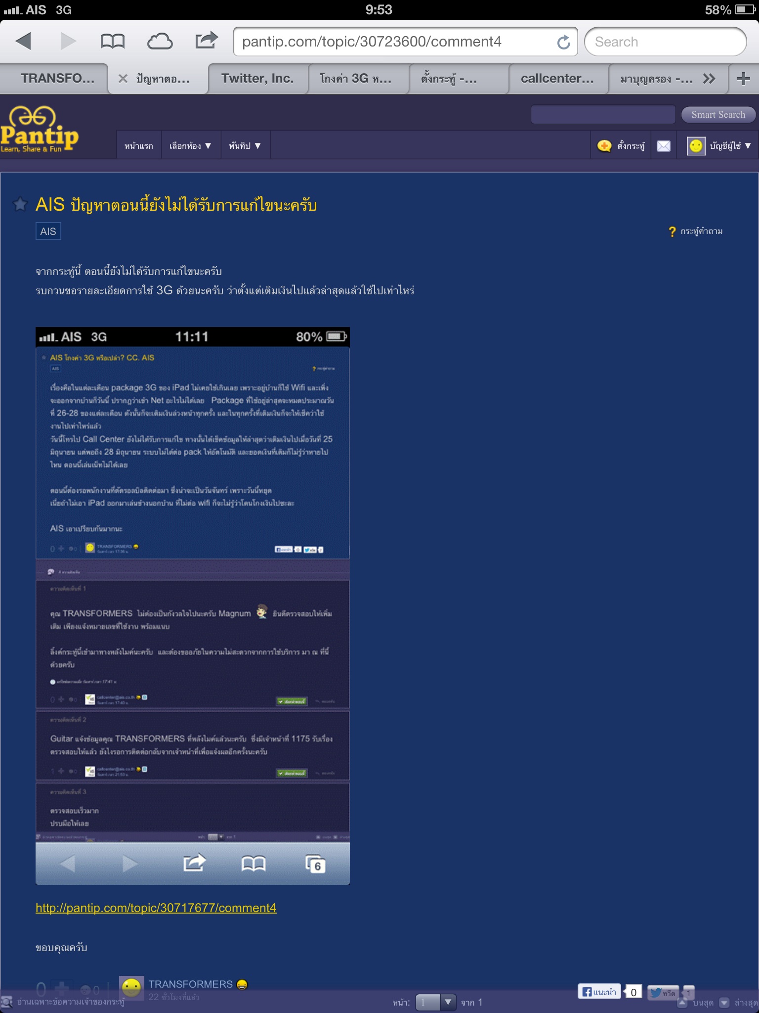 Post ตามเรื่องที AIS ก็มาตอบทีว่าจะเช็คจะตรวจสอบให้ แต่ปัญหาก็ไม่ได้รับการแก้ไขซักกระที? CC.AIS