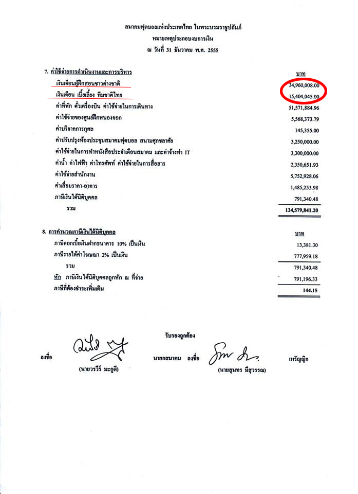 ยอดรายจ่ายเงินเดือน+เบี้ยเลี้ยงนักกีฬาปี2555 ดูจากงบรายจ่าย แต่ทำไมนักฟุตบอลยังทวงเบี้ยเลี้ยง ??