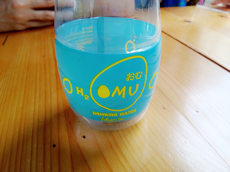 สั่งอาหารเรียบร้อยก็นั่งรอครับ น้ำเปล่าของร้านขวดน่ารักดีครับ