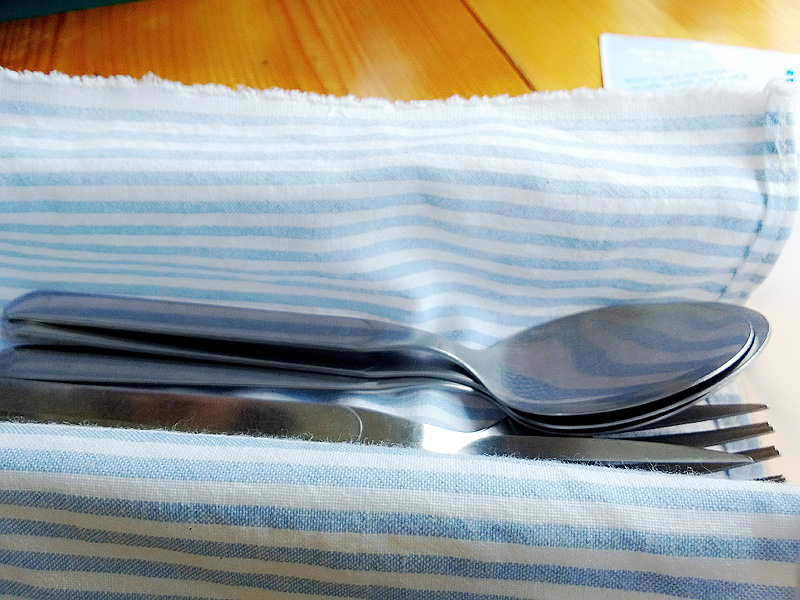 ร้านนี้ใส่ใจรายละเอียดดีครับ ช้อนส้อมใส่มาในตะกร้าน่ารัก ห่อผ้ามาอย่างดีดูน่่าใช้งาน