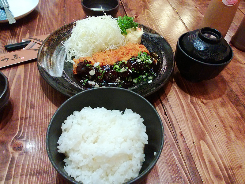 เมนูที่ผมสั่งไปครับ ทงคัทสึหมูสันนอกราดซอสมิโซะ ข้าวที่เห็นนี่เยอะมากครับ ชามลึกน่าดูเลย