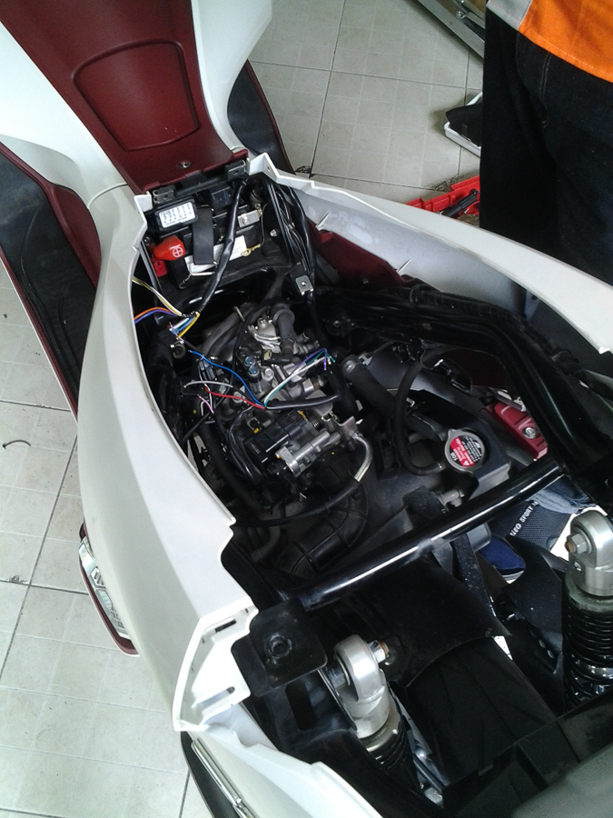หลังจากเสร็จ ผมก็ยังปรับอะไรไม่เป็นครับ รู้แต่ปรับไฟ ตรงไหน ปรับน้ำมันตรงไหน แต่ปรับแล้วเป็นใงไม่รู้ ทีแรกช่างลอง เพิ่มไฟให้จนสุด แล้วเอาออกไปขับดู ผลคือบิดติดมือ มาไวขึ้นกว่าเดิม เสียเครื่องเปลี่ยนไปเลย