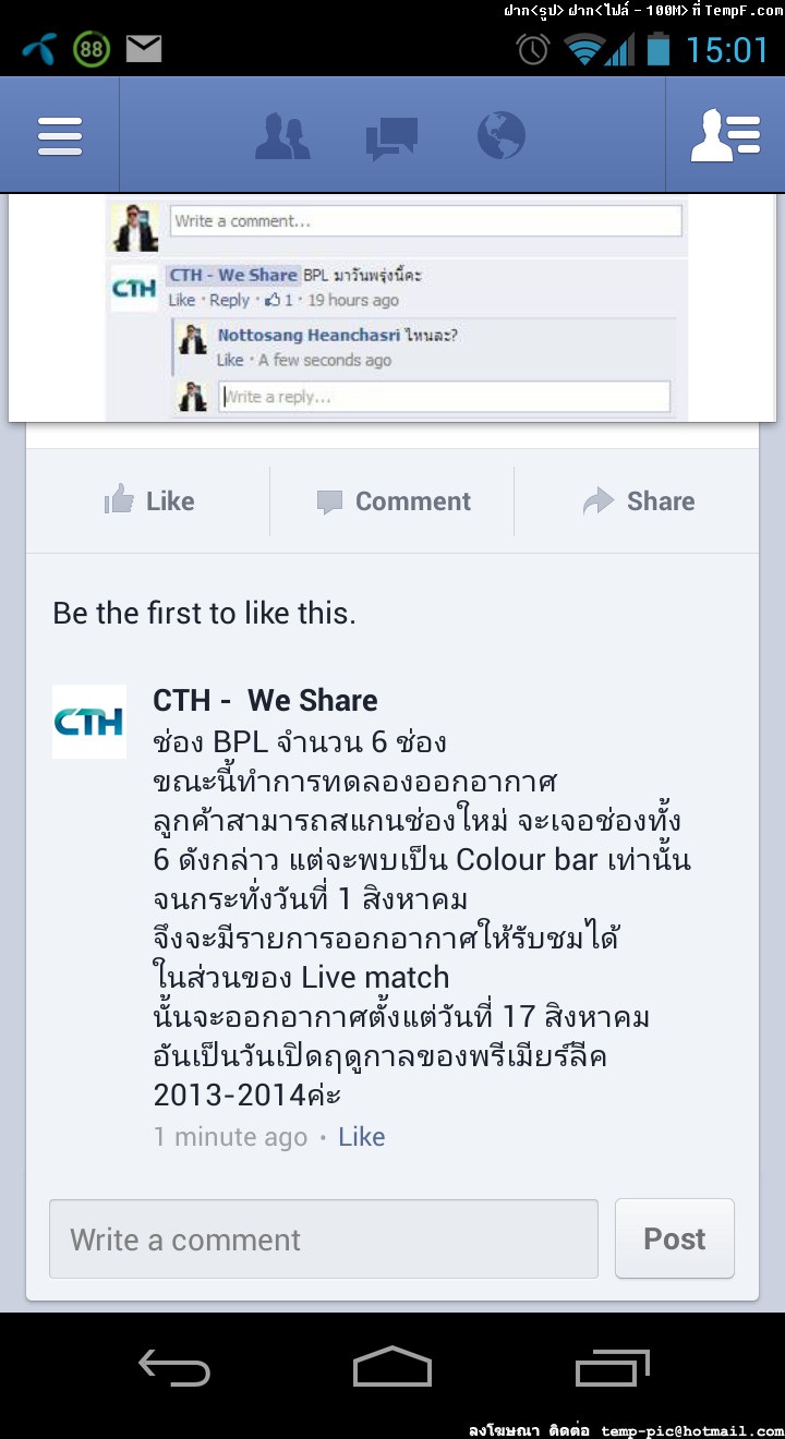 คือพอดีว่า อยู่เชียงใหม่ค่ะ แล้วที่บ้านดูบอลพรีเมียร์ลีก กับทาง cth โดยผ่านเคเบิลทีวี ท้องถิ่นคือ wetv แล้วทีนี้มีข้อความจาก wetv ส่งมาให้ว่า จะหยุดส่งสัญญาณ cth ตั้งแต่ 1 มิถุนายน 2558 นี้ เลยอยากสอบ