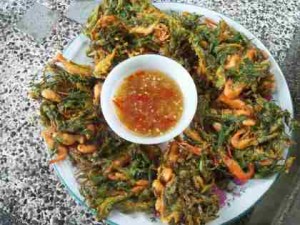// กุ้งทอดใบเล็บครุฑ // ส่วนผสม - ใบเล็บครุฑ 10 กรัม - กุ้งขาว 50 กรัม - แป้งทอดกรอบ 30 กรัม - แป้งข้าวเจ้า 20 กรัม - น