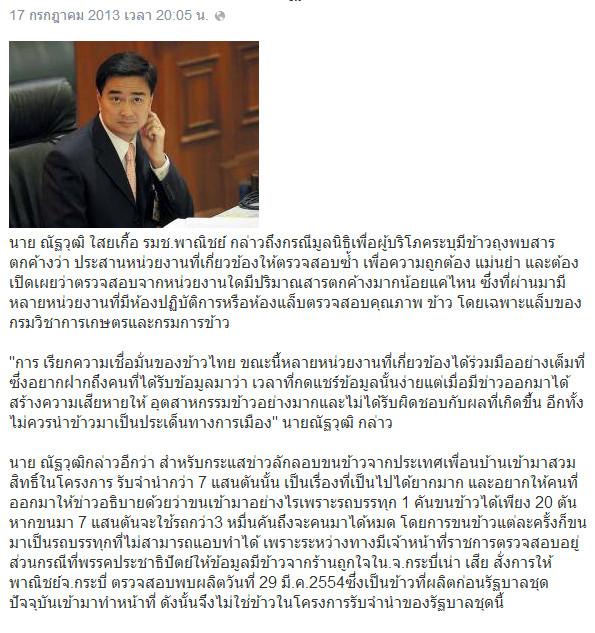 ปรากฎว่าข้าวเน่าที่กระบี่ ผลตรวจสอบชี้ชัดผลิตในช่วงรัฐบาล ปชป.