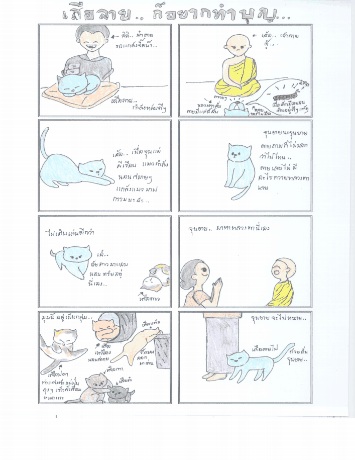 หัดวาด กับ การ์ตูน แมว แมว (ตอน เสือลายก็อยากทำบุญ / กลอนแมวสอนใจ)