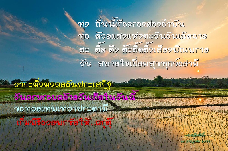 34. นิพฺพานํ ปรมํ สุขํ นิพพานเป็นบรมสุขอย่างยิ่ง ปรารถนาหลุดพ้น..........เกิด-ตาย จมอยู่กับทุกข์หลาย.......ชาติแท้ ปองพระนิพพานหมาย....บรมสุข จงหมั่นเจริญมรรคแล้.....เพื่อแก้อวิชชา ตัณหามลายหมดสิ