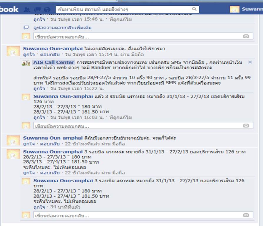 อยู่ ๆ มาเก็บเงิน กว่าจะติดต่อ call center ais ก็นานมาก ส่งข้อความร้องเรียน ไปทาง web ก็ไม่ตอบกลับ ต้องส่งไปใหม่ 2 -3 รอบ พอตอบกลับก็บอก ขอเช็คข้อมูลก่อน แล้วก็หายไปเลย
