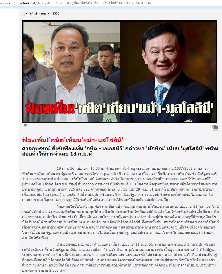 **ศาลอุทธรณ์สั่งรับฟ้องเพิ่ม"กษิต-เอเอสทีวี"กล่าวหา"ทักษิณ" : ศาลอุทธรณ์พิพากษายืนยกฟ้อง“อลงกรณ์”หมิ่น"เนวิน+ชัย(byแก้ม)