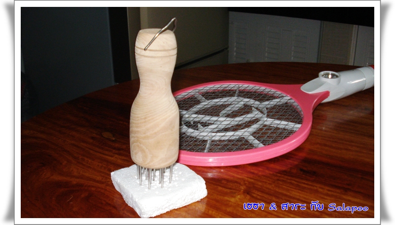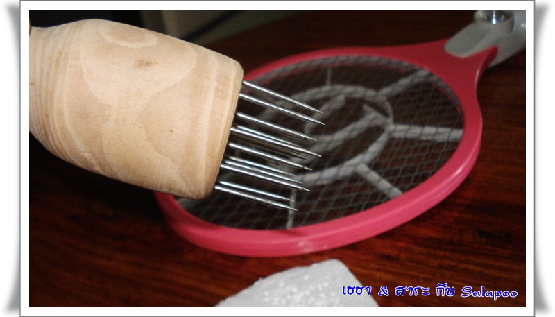 จิ้มให้ทั่ว ใจเย็น ๆ ให้พรุนซ้ำแล้วซ้ำอีก ใช้เกลือป่นทาให้ทั่ว ส่วนหนังทาด้วยน้ำส้มสายชู