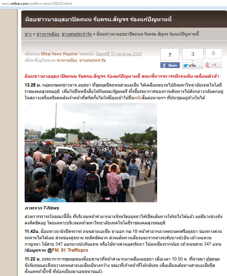 **ม็อบชาวนาอยุธยา "ยุติการปิดถนน" รับครม.สัญจร ร้องแก้ปัญหาหนี้