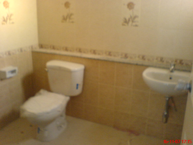 ห้องน้ำเคยปูกระเบื้องทับแล้ว 1 รอบ ลายกระเบื้อง สีกระเบื้องที่ปูทับ ไม่ถูกใจ ต้องการเปลี่ยนสีพื้นกระเบื้อง โดยการทาทับ ขนาดไม่เกิน 5 ตรม. ห้องน้ำคอนโด