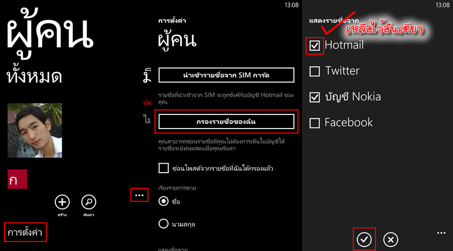 ช่วยแนะนำการยกเลิกการเชื่อมโยงรายชื่อของ Nokia Lumiaให้หน่อยครับ