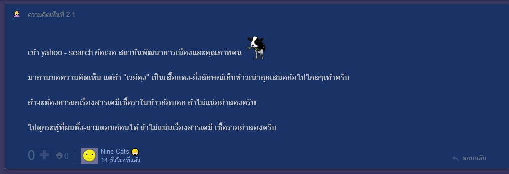 ขอรับคำท้า Nine Cats ถกเรื่องสารเคมีในข้าวครับผมยืนยันว่าข้าวไทยกินได้แน่นอน