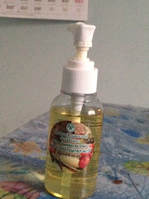 น้ำยาล้างผักผลไม้ ใช้แช่ผักและผลไม้ประมาณ 5 นาทีแล้วล้างอีกรอบด้วยน้ำสะอาด