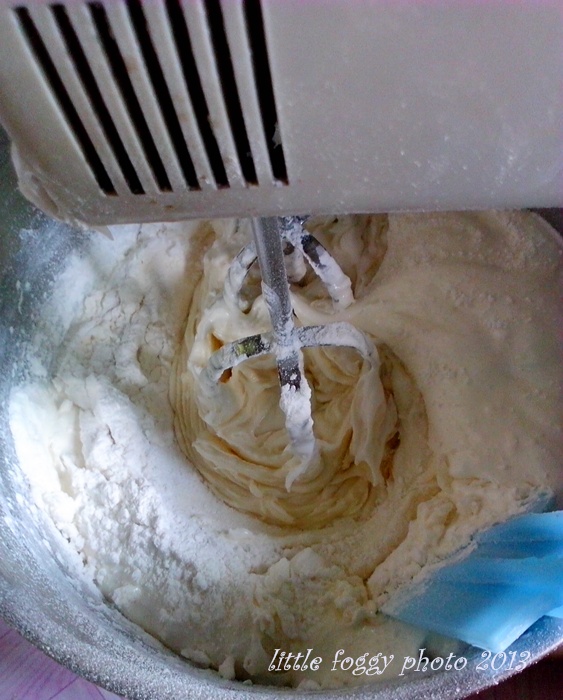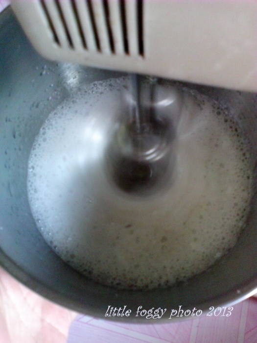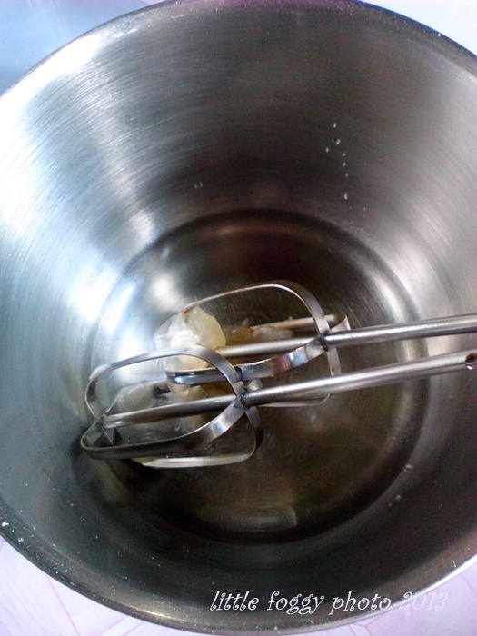 แล้วมาตีส่วนผสมต่อด้วยความเร็วต่ำสักสองนาที แล้วหายนะก้อมาเยือนอีกครั้ง เครื่องปั่นเปิดไม่ติด แป่ววววววววววทำงัยล่ะที่นี้สูงสุดคืนสู่สามัญค่ะใช้ตะกร้อมือกวนเอาเลย อันนี้ก้ออาจเป็นอีกหนึ่งสาเหตุที่ทำให้ขนมเป็นแบบนี้คือไม่ฟูอย่างที่ต้องการ