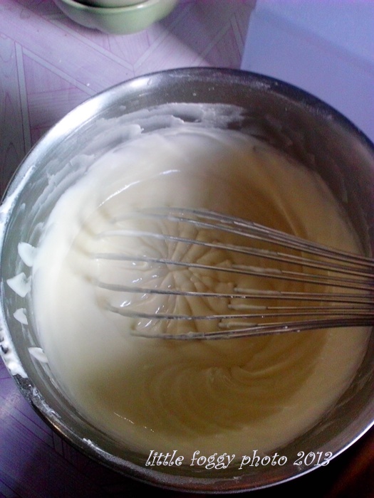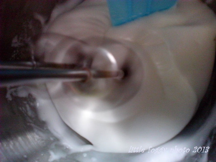 แล้วปัญหาก้อมีอยู่ว่านึกว่ามีนมสดอยู่ในตู้เย็นปรากฎว่าไม่มี เหลือบไปเห็นวิปปิ้งครีมเหลืออยู่เลยจับมาผสมน้ำซะแทนนมสด 3/4 ถ้วย ความคิดบรรเจิดมาก 555