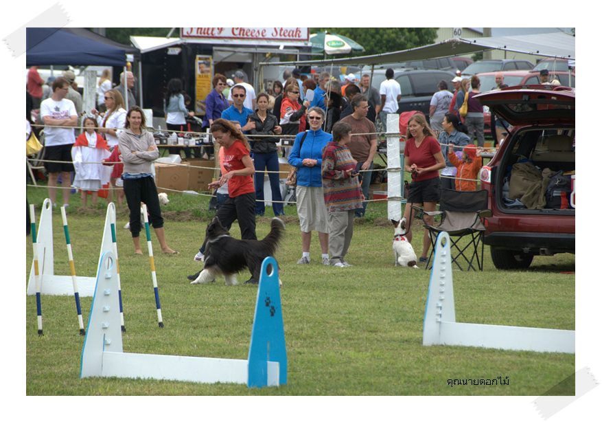 เด็กๆที่มาแสดง เป็นมะหมาที่เลี้ยงไว้ตามบ้านค่ะ พ่อแม่พาไปเรียนเพื่อหากิจกรรมให้ลูกทำ ไม่ได้ฝึกเพื่อการประกวด แต่ทุกตัวก็โชว์ความสามารถกันเต็มที่ ( แม่น้องลูกหยีก็กะจะไปดู เพื่อเรียนรู้เทคนิคและจะหาทางดัดแปลงของเล่นให้ลูก)