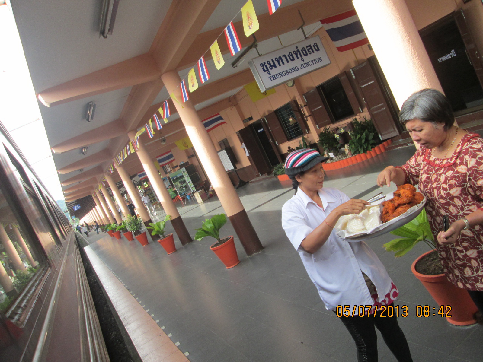 ตื่นเช้ามาก็เจอสถานีนี้แล้ว จำไม่ได้ว่าสถานีอะไร แต่เริ่มมีคนขึ้นมาขายของบ้างแล้วค่ะ