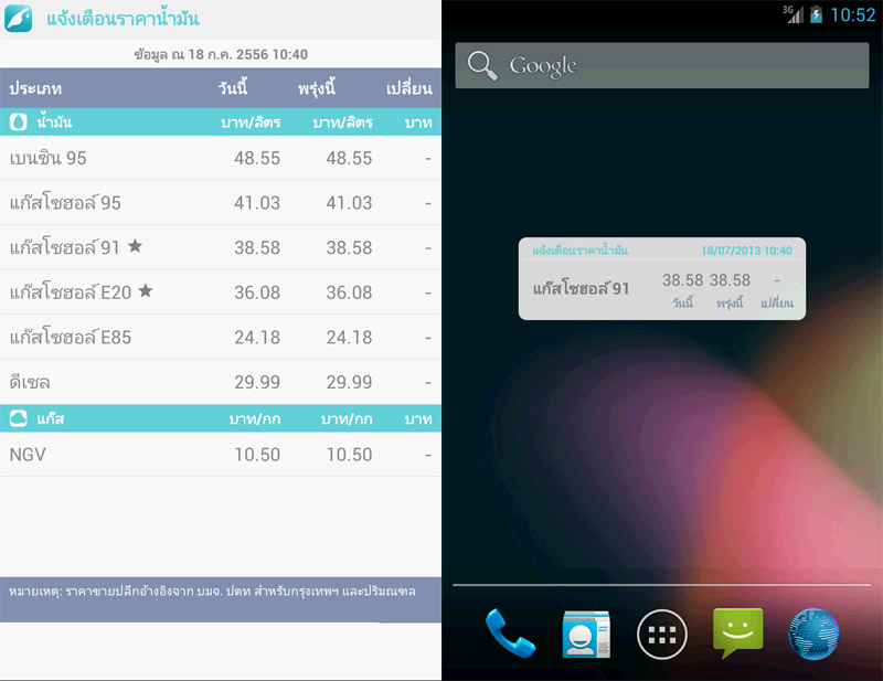 app ยังมี widget ให้ดูราคาน้ำมันได้บนหน้า home เลยครับ