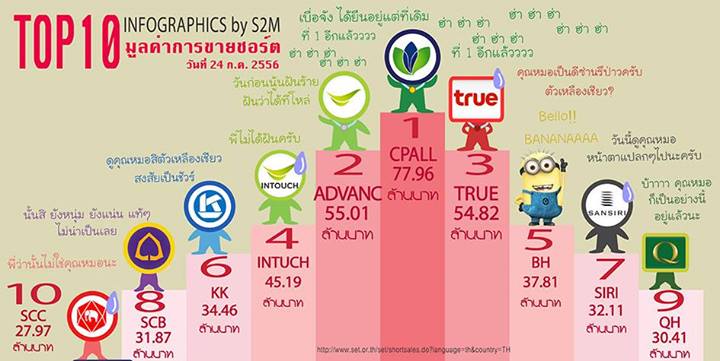ADVANC มูลค่าชอร์ตพุ่ง 128 ล้านบาท AOT-CPALL มาเป็นอันดับ 2-3 Infographic by stock2morrow