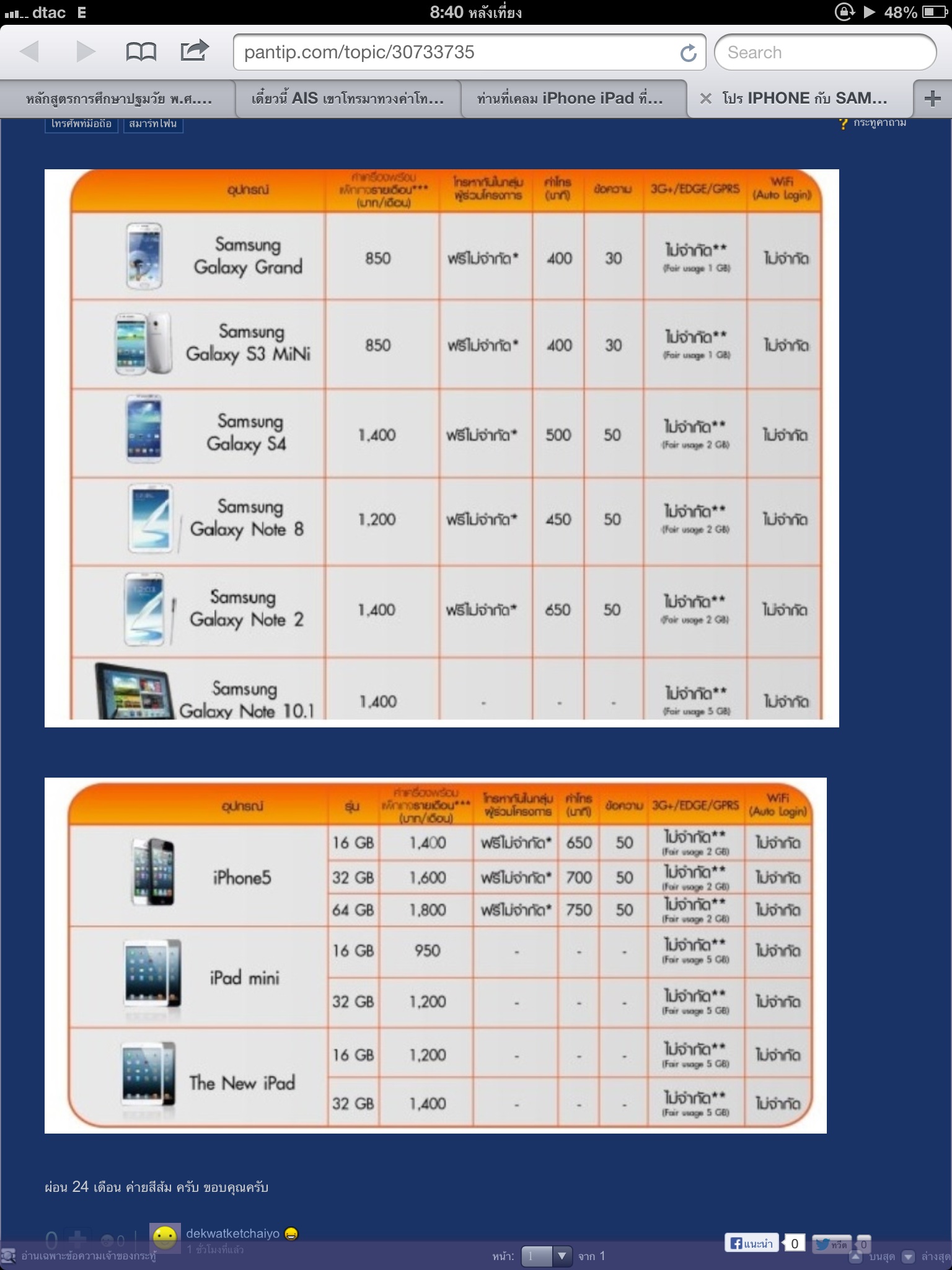 ของค่ายไหนเอ่ย แต่สีส้มน่าจะเป็นทรู ... ถ้ามีหมดเขตหรือยังคะ คือวันก่อนเห็นในพันทิปแว้บๆ แต่โทรไปคอลเซนเตอร์บอกไม่มีโปร24เดือน ขอบคุณสำหรับคำตอบล่วงหน้าค่ะ