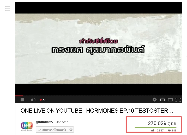 ตัวเลขวิวบนยูทูป และวันที่ออนแอร์ ซี่รี่ส์ฮอร์โมน วันนี้ ตรงกัน