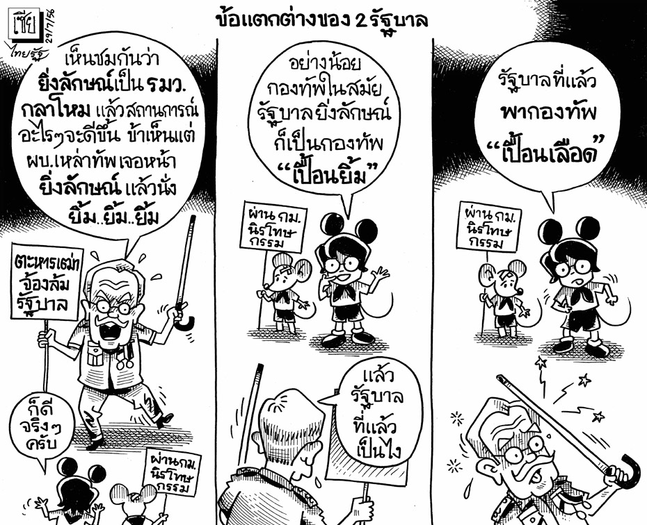 ระบอบยิ่งลักษณ์ คือ การเคารพสิทธิ เสรีภาพ ให้เกียรติ คนเท่ากัน ทุกสี ทุกภาค เคารพกติกา นำพาชาติบ้านเมืองไปข้างหน้า ระบอบสุเทพ คือ คุกคามสิทธิ เสรีภาพ คนอื่น ดูถูก เหยียดหยาม คนเห็นต่าง เคารพกติกู นำพ