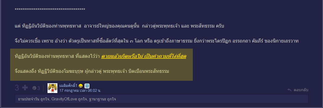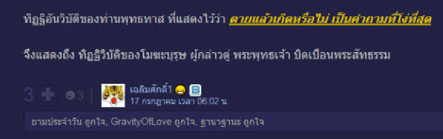 เพียงเพราะมีสมาชิกท่านหนึ่ง โพสต์ข้อความของท่านพุทธทาสที่กล่าวว่า "ตายแล้วเกิดหรือไม่ เป็นคำถามที่โง่ที่สุด"