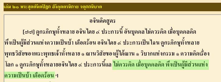 เมื่อบุคคลคิด พึงเป็นผู้มีส่วนแห่งความเป็นบ้า (แบบเดียวกับชายผู้เมาหมกในการคิดเรื่องโลกจาก อจินตสูตร นั่นเอง)