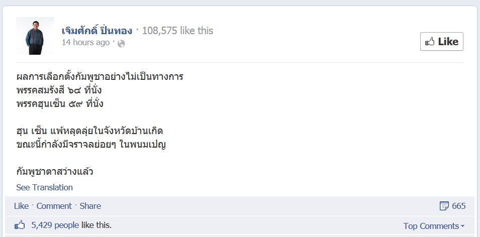 มู้นี้ขอทำหน้าที่แทน "อ่วมสตาร์" จาก FB เจิมศักดิ์ ลงข้อมูลเลือกตั้งกัมพูชาบิดเบือนกลับแพ้เป็นชนะ กลับชนะเป็นแพ้