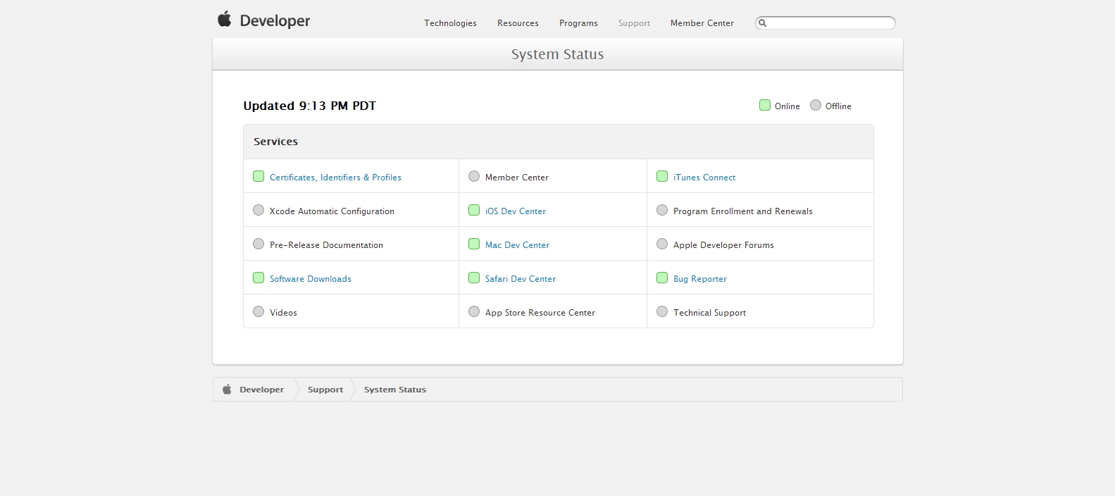 https://developer.apple.com/support/system-status