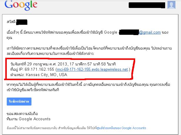 เรื่องมีอยู่ว่า ผมหยิบ smartphone ขึ้นมา เจอแจ้งเตือนว่าไม่ได้ login เข้า gmail ผมจึงทำการ login ไปตามปกติ ปรากฎว่าเข้าไม่ได้ แจ้งว่า account มีการเปลี่ยนแปลง เข้าเช็คเมล์ก็ไม่ได้ พยายาม login หลายครั้ง