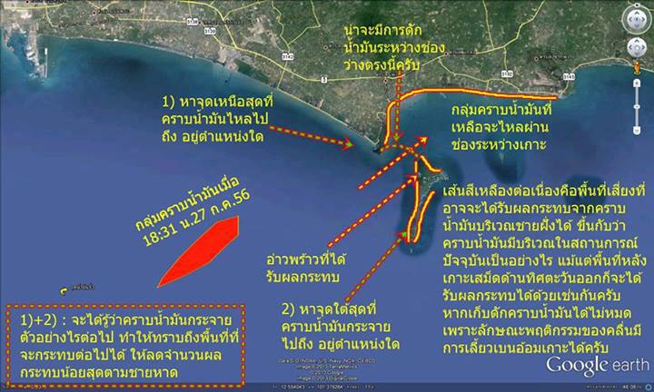 - Booming & Skimming และอาจใช้สารเคมีอินทรีย์บางอย่าง