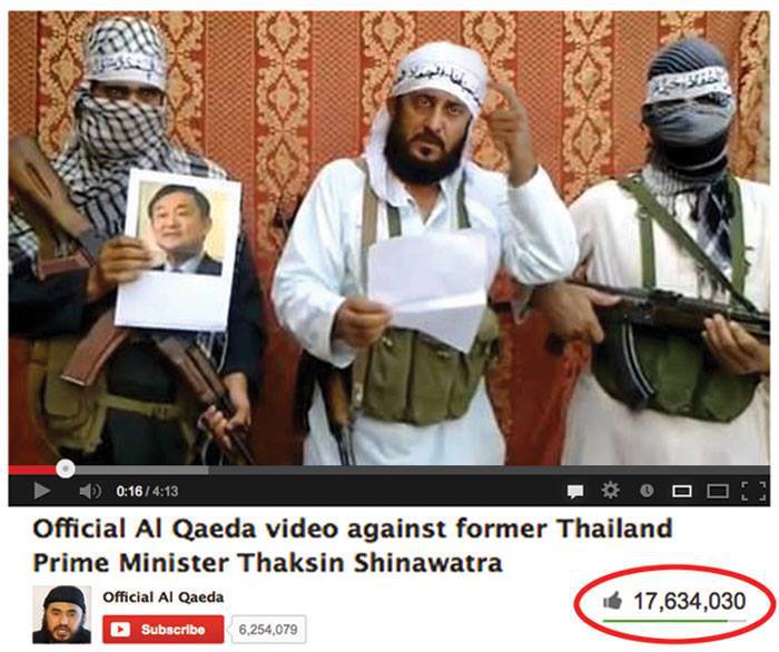รายงานข่าวยืนยันเป็นมั่นเหมาะ ว่า สืบเนื่องจากมีการเผยแพร่คลิปทางโลกไซเบอร์เป็นภาพของชายฉกรรจ์จำนวน 3 คน โดยชายคนกลางไม่ได้คลุมใบหน้าเหมือนอีกสองคนที่อยู่ข้างๆ ประกาศเสียงดังฟังชัดว่า กลุ่มอัลกออิดะห์จะตามไล่ล่านักโทษชายทักษิณ ชินวัตร อย่างไม่ลดละ แม้อดีตผู้นำไทยที่ตอนนี้หลบซ่อนตัวอยู่ในดูไบ จะหนีไปอาศัยในแดนอเวจีพวกเขาก็จะไม่ละเว้น