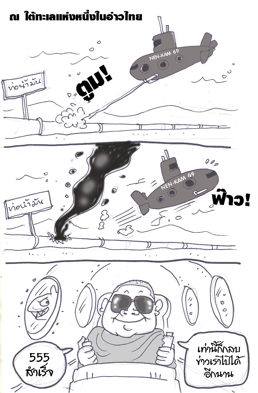 สถานการณ์น้ำมันรั่วทะเลไทยกำลังนำไปสู่ความขัดแย้ง...แต่อย่าลืมจนปล่อยให้คนชั่วลอยนวลนะครับ เขียนขำๆ คลายเครียดครับ หรือจะเครียดมากขึ้นก็ไม่ว่ากัน ...ไม่เหมาะสมอย่างไร ขออภัยด้วยนะครับ (แรงบันดาลใจจากกระทู้บางกระทู้ในพันทิพย์ครับ)