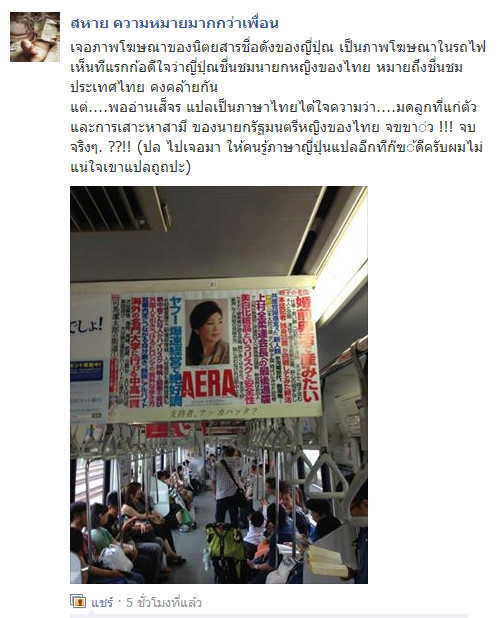 จากกรณีที่นายพัสณช เหาตะวานิช เลขาฯส่วนตัวนายกรณ์ จาติกวณิช ได้ออกมาเขียนเฟสบุ้คข้อความบิดเบือน โดยแปลข้อความจากหน้าปกนิตยสารสุขภาพ ที่มีภาพนายกรัฐมนตรียิ่งลักษณ์ ชินวัตร อยู่บนหน้าปก โดยใช้ข้อความว่า