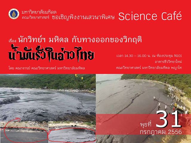 เชิญฟังเสวนาพิเศษ นักวิทย์ฯ มหิดล กับทางออกของวิกฤตน้ำมันรั่วในอ่าวไทย 31กค56