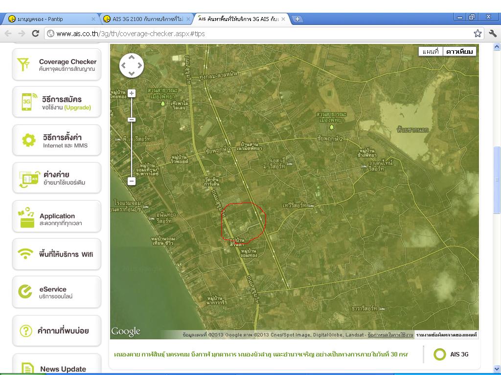 พื้นที่ตลาดน้ำ 4 ภาค ไปทำงานทีไรเป็นทุกครั้งตลอด เหลือขีดเดียว ช่วงนี้ฝนตกไม่ต้องพูดถึงครับ สัญญาณ 3G หายไปเลยตลอดเวลาที่ฝนตก และสลับเป็น E ซะงั้นทั้งที่พื้นที่ให้บริการจังหวัดชลบุรีสัญญาณครอบคลุมมากๆๆๆ แต่ทำไมทั้งๆที่บริเวณตลาดน้ำ 4 ภาคติดถนนใหญ่ถนนสุขุมวิทซึ่งเป็นถนนเส้นหลักของภาคตะวันออกจากชลบุรีไปจนถึงจังหวัดตราด สัญญาณกับอ่อนเป็นอย่างมาก ผมแจ้งไปหลายรอบแล้วแต่ก็ยังไม่ได้รับการแก้ไขอีก ผมขี้เกียจจะตามเรื่องแล้วครับ อุตส่าห์หนีจาก ใบพัดมาน้องอุ่นใจ และเยิกเลิกเบอร์น้องอักษรภาษาอังกฤษตัวที่ 8 ที่โปรมีราคาแพงพอๆกัน รูปประกอบด้านล่างครับ แล้ววงกลมสีแดงนั้นคือพื้นที่ของตลาดน้ำ 4 ภาคพัทยาครับ ผมไม่อยากจะเชื่อครับว่าทั้งพื้นที่คลอบคลุมมากแต่สัญญาณแทบจะไม่มีเลย อย่างมาก 2 ขีด ผมใช้ iPhone 4S ครับ