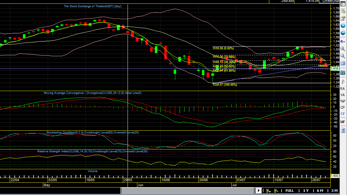 วันนี้เอาเรื่องอีกแล้วเซ็ตเรา จริงๆมันไม่ควรหลุด 1420 เลยนะครับ ได้แต่ภาวนาว่า น่าจะปิดบวกเหนือ 1420 ให้ได้ในวันนี้ หรือถ้าหลุดก็ไม่น่าต่ำกว่า 1410 จุด ซึ่งถ้าหลุดไปจริงเอาไม่อยู่แน่ๆ ราคาอาจจะร่วงอย่างรวดเร็ว
