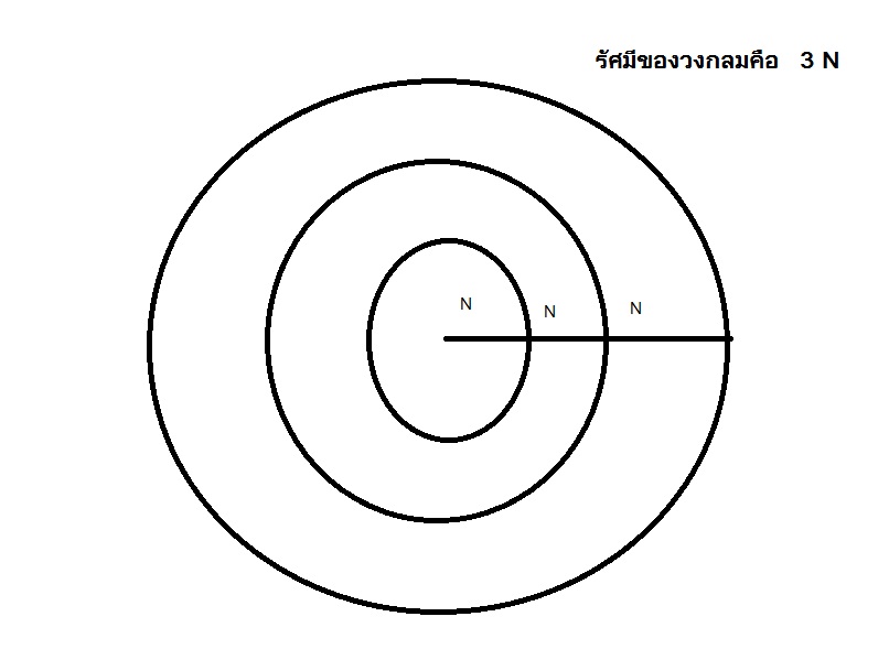 ถือว่าโดนหลอกให้ฟังก็แล้วกัน ข้างล่างนี่ล่ะครับดูให้เป็นวงกลมหน่อยก็แล้วกัน รัศมีของวงกลมใหญ่สุดคือ 3N แต่ในเคสของใช้เป็น 1 เพื่อความเรียบง่าย