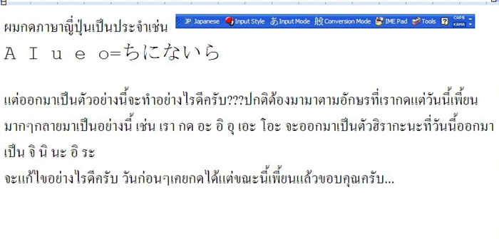 อะ อิ อุ เอะ โอะ แต่ดันออกมาเป็นตัวฮิรากานะว่า จิ นิ นะ อิ ระ เซ็งเลยไม่ได้พิมพ์เลย ไม่ทราบจะแก้ไขอย่างไรดีครับ ขอให้อธิบายอย่างละเอียดหน่อยนะครับ...ขอบคุณครับ...
